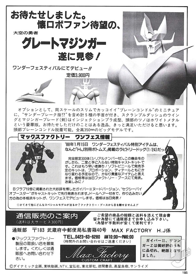 レジンキットでの版権料は微々たるもので、版権元にとってはファン活動へのサービス程度の物だったが、その後状況も変わって会社にしないともう版権が下ろせないと言われてマックスファクトリーを1987年4月に設立することになる。