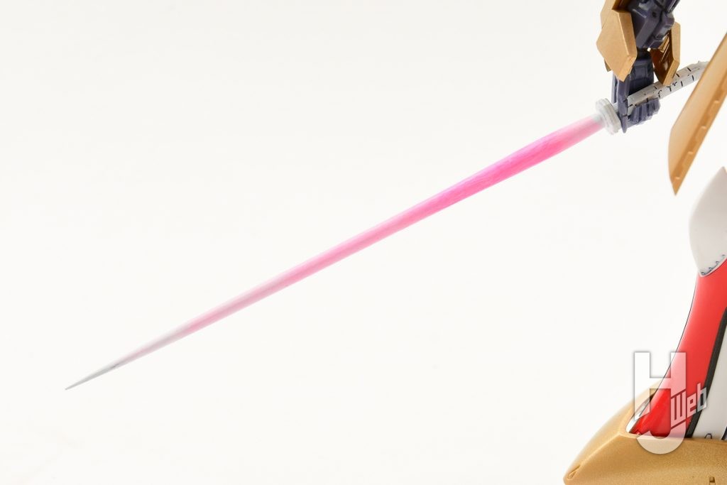 ▲ 光剣(スパッド)パーツは、成型色がフレームと同じグレーで成型色仕上げができないためここだけ力技!ファレホのホワイトで全体を塗装した後、メカカラーの蛍光マゼンタを少し混ぜながら重ね塗りしていきます