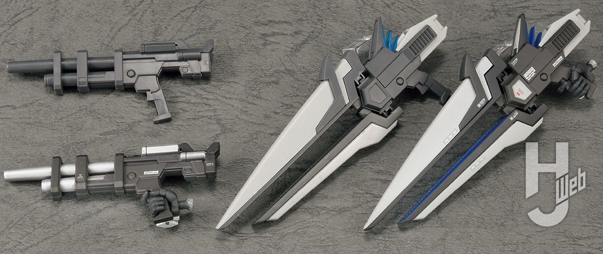 さて、キットはそのソードブレイカーに加えて胸部のファイア・ダガー再現パーツ、斬撃武器のレーザーブレード、射撃武器はハルバート・ランチャーにガンレイピアとふたつも同梱されており、さまざまなアクションシーンに対応しているのがありがたいですね。