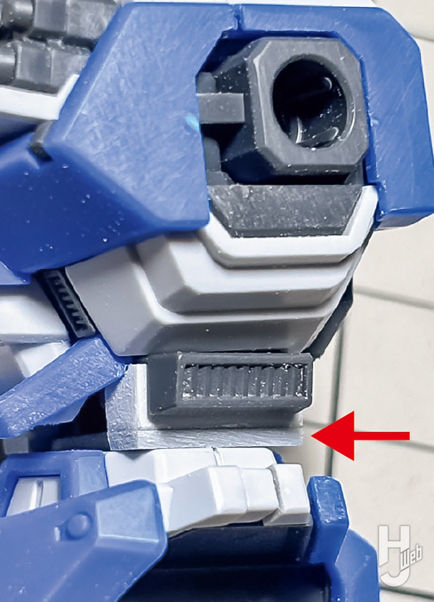 ハンドパーツは、ギュッと握った形状が欲しかったのでAUBE Dimension WorksのADハンドに交換しました。手の甲の形が特徴的なので、編集部に無理を言ってキットをもうひとつ用意してもらい、追加したハンドパーツぶんの手甲パーツをそっちからコンバートしちゃいました(汗)。