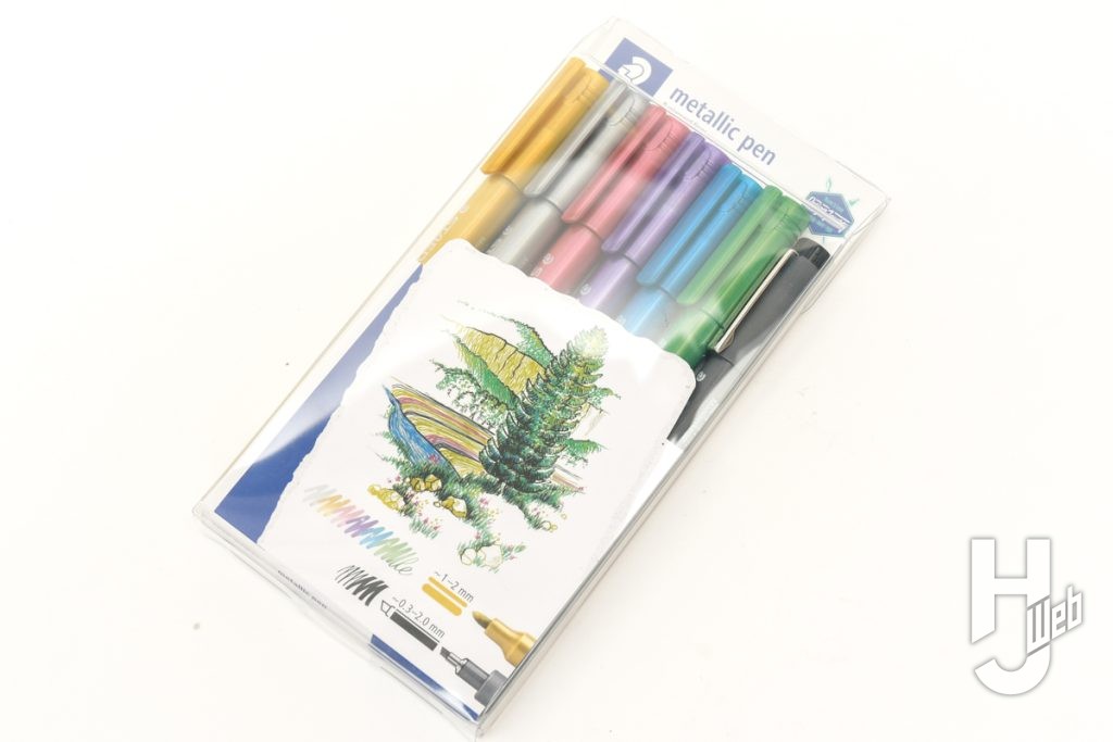 ステッドラーのペンのラインナップには、水性のメタリックカラーもあります(実はスケールモデル編でも活躍! 零戦の脚庫内の青竹色に使用しました)。金や銀だけでなく、カラフルなメタリックが楽しめるメタリックペンシリーズも使って、さらに色々と楽しんでみましょう!