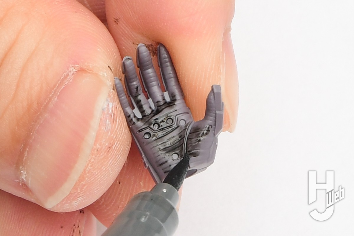 ▲ 手のひらにもディテールがあるので、どんどん塗りつけていきます。はみ出しや濃淡はあまり気にせずに全体に塗りましょう