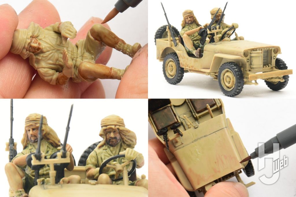 ▲ まずはキットのディテールの溝にウォームグレイミディアムを塗っていきます。暖色系のグレーなので、スミ入れをするのにちょうど良い色味です