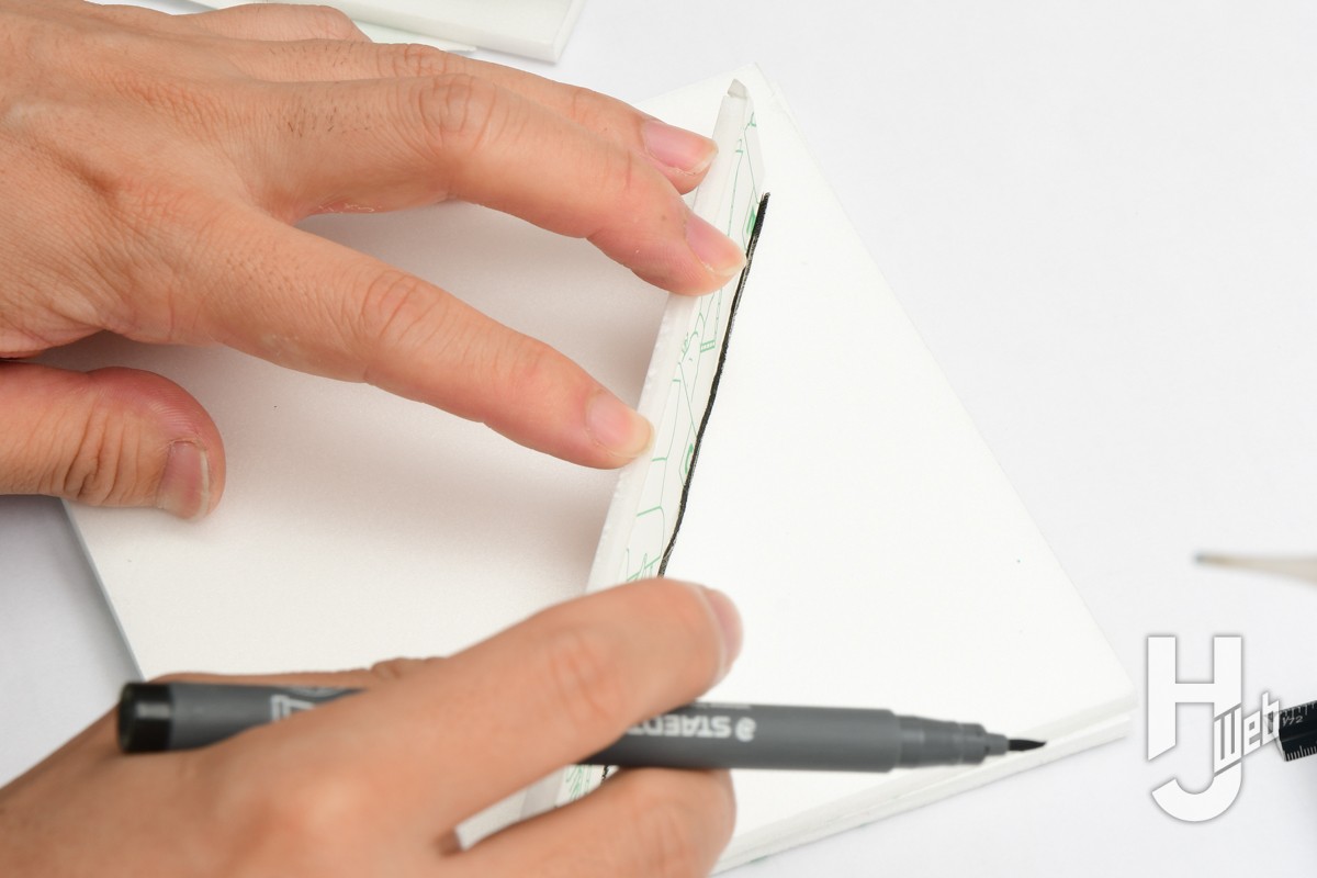 ▲ 段差をつけるポイントにペンで目印をつけつつカット。立体のベースを作っていきます