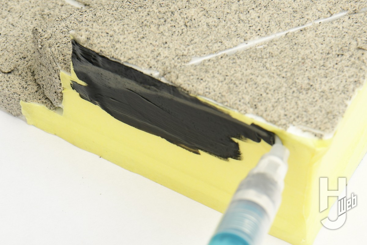 ▲ ここでブレンディングリキッドの出番です。今までの色を混ぜたり、端をぼかすように塗り拡げるだけで、いい感じに石の端の汚れを表現することができました