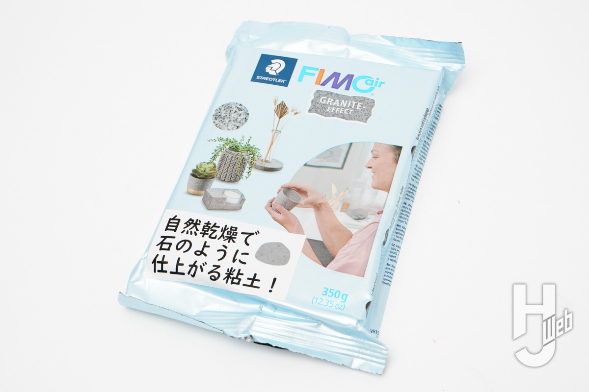 こちらも同じくステッドラーから発売のマテリアルである「FIMO(フィモ)」を使ってみましょう。通常のラインナップはカラフルでベタつかず、仕上がりもサラッとした表面になるキレイ系の粘土ですが、今回使用するのはフィモエアーのグラナイト。こちらは乾燥させると、まるで本物の石になったのではないかと勘違いしてしまうほど、“本物らしい”仕上がりになる特殊なアイテムです。