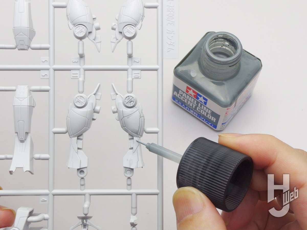 タミヤ スミ入れ塗料でキット全体にスミ入れをします