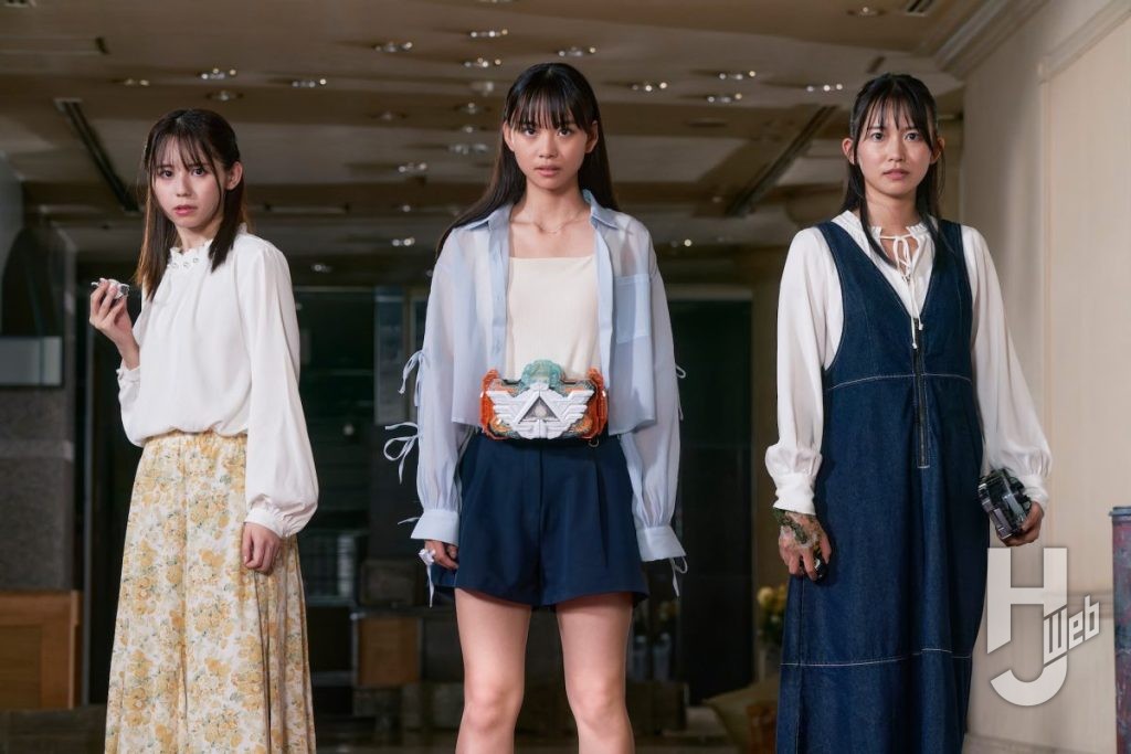 りんねの腰には「アルケミスドライバー」が、沙羅の左手には「デザイアドライバー」が、そして静香の右手には「キバーラ」が見える。ということは…!? 夏木花はシリーズ3作品連続での出演となる。