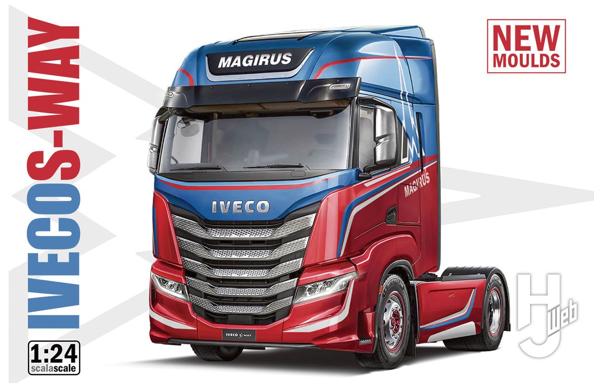 イタレリから車両キット2種が登場。1キット目はイタリアの車両メーカー、イベコの最新大型トラック Sウェイ。イベコ(IVECO)はトリノに拠点を置く産業用車両メーカーで、トラックや建設用特殊車両などを製造している。Sウェイは前作ストラリスをフルモデルチェンジして2021年に登場した最新モデル。キットはエンジンもパーツ化されたフルディテール仕様で、キャビンは完成後も前方に可動、左右ドアは開閉選択式。クロームステッカーも付属する。デカールは2種を収録。