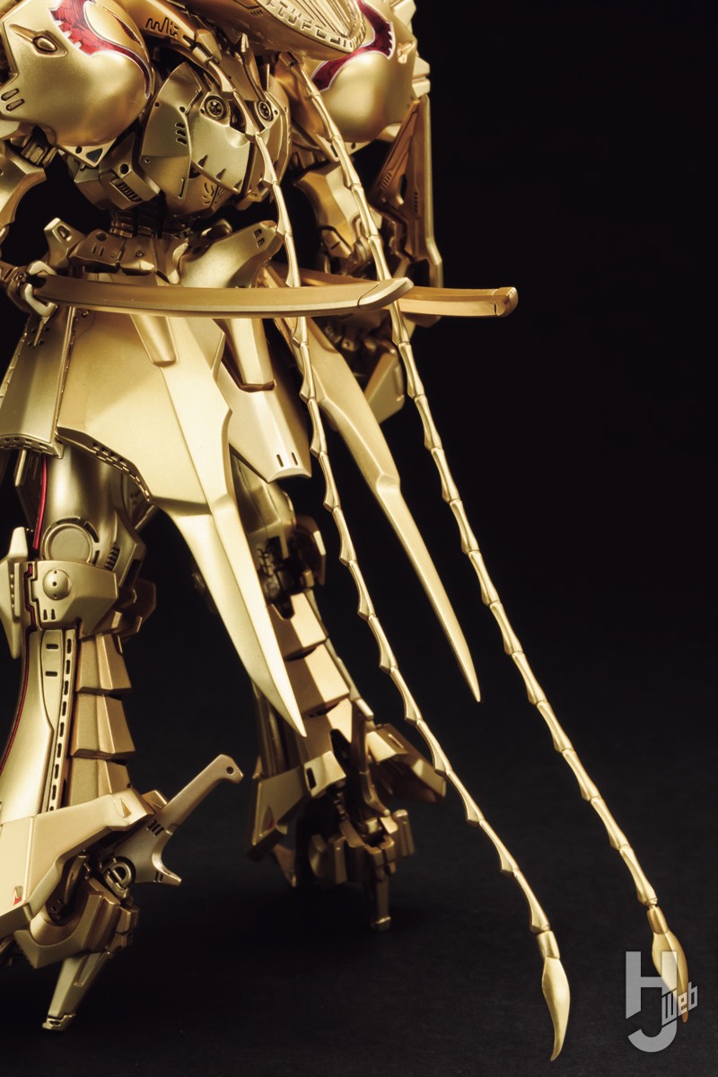 コレクションサイズとしてもちょうどいい1/144スケールのザ・ナイト・オブ・ゴールドがボークスより登場しました。スケールが小さいとはいえ、その情報量は1/100となんら遜色なく、スケールダウンにともない細かな可動部分を固定することによって、より組みやすくなっています。1/100ではビス等での可動軸のテンション調整だった箇所も、ポリキャップのみでもしっかり保持してくれます。