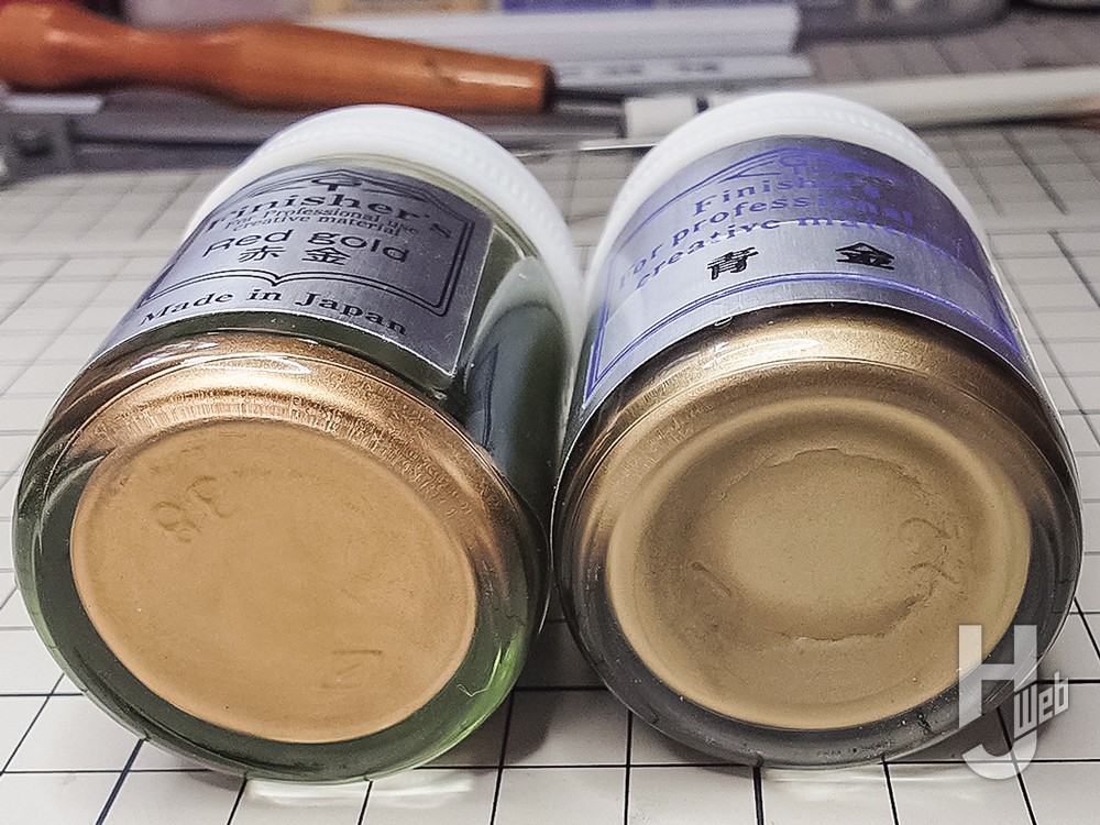 さて表面の整形に関してですが、ゴールドを吹いた基本塗装後のほうが確認しやすいと思います。スジボリ堂のマジックヤスリを使い修正するのですが、このヤスリは塗料の目詰まりが起きないため、塗膜と下地のプラの境界線ができません。なので、修正度合によって、マジックヤスリの400番~1200番で仕上げて、同じ色を再塗装すればメタリックであっても修正箇所は分からなくなります。ぜひお試しを!