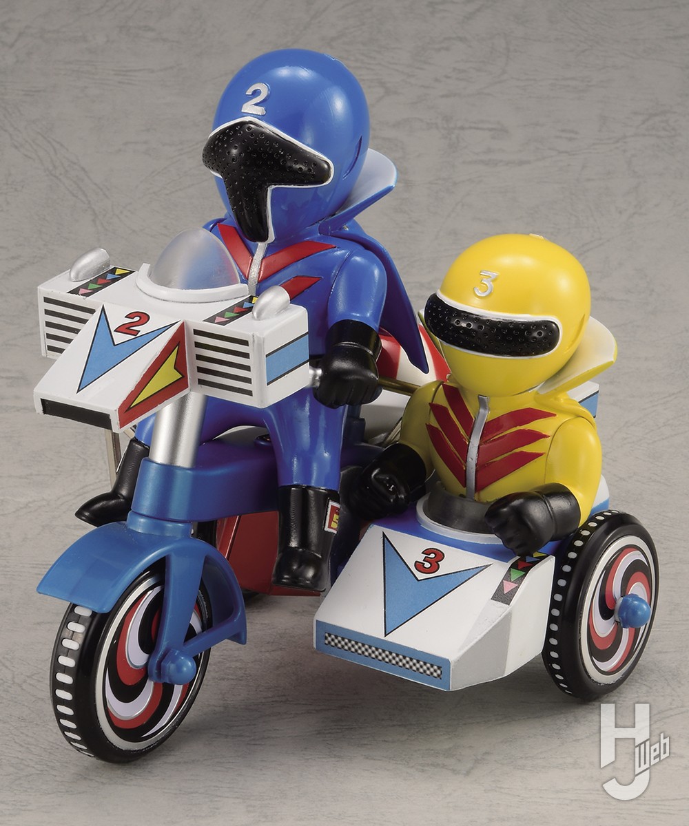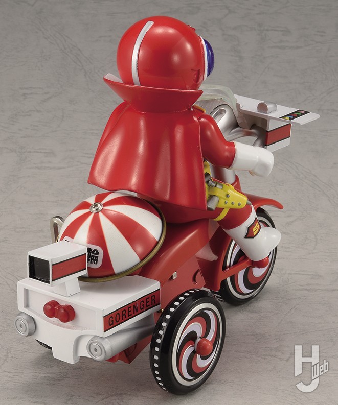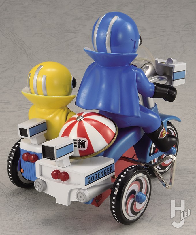 レトロなゼンマイ式三輪車に人気キャラクターが乗るEX三輪車シリーズに、新たに『秘密戦隊ゴレンジャー』が見参。シリーズ初のサイドカースタイルだ!