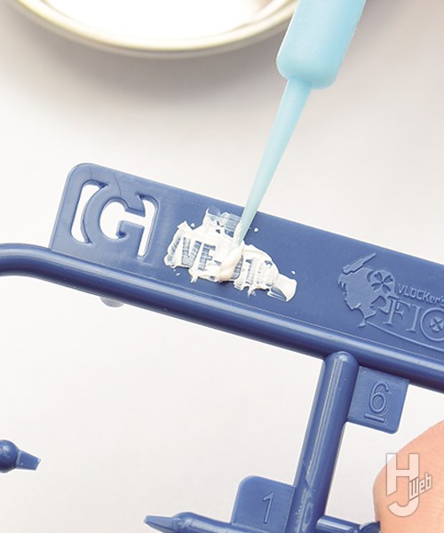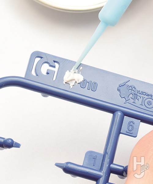 ▲塗り棒やスパチュラなどを用いて盛り付けることが主な使い方になります。ペースト状なのでパーツによく食いつきますが、水性で表面を侵さないため乾燥後に剥がれることもあります。あらかじめ表面を荒らしておいたり、凹凸をつけておくほうがよいでしょう