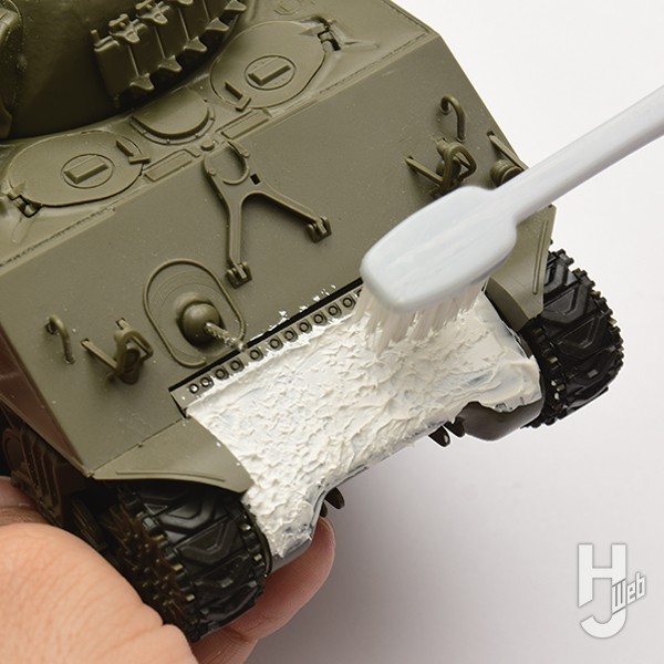 ▲スケールモデルの表面に薄く塗りつけてから歯ブラシで叩いてテクスチャ付けをしてみます