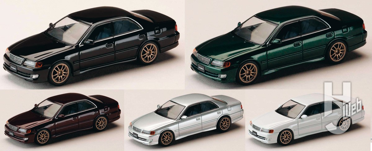 トヨタ チェイサー ツアラーV(JZX100)アーリーバージョン(1996)ブラック カスタマイズカラー、ダークグリーンマイカ、パープルカスタマイズカラー、シルバーメタリック、スーパーホワイトII