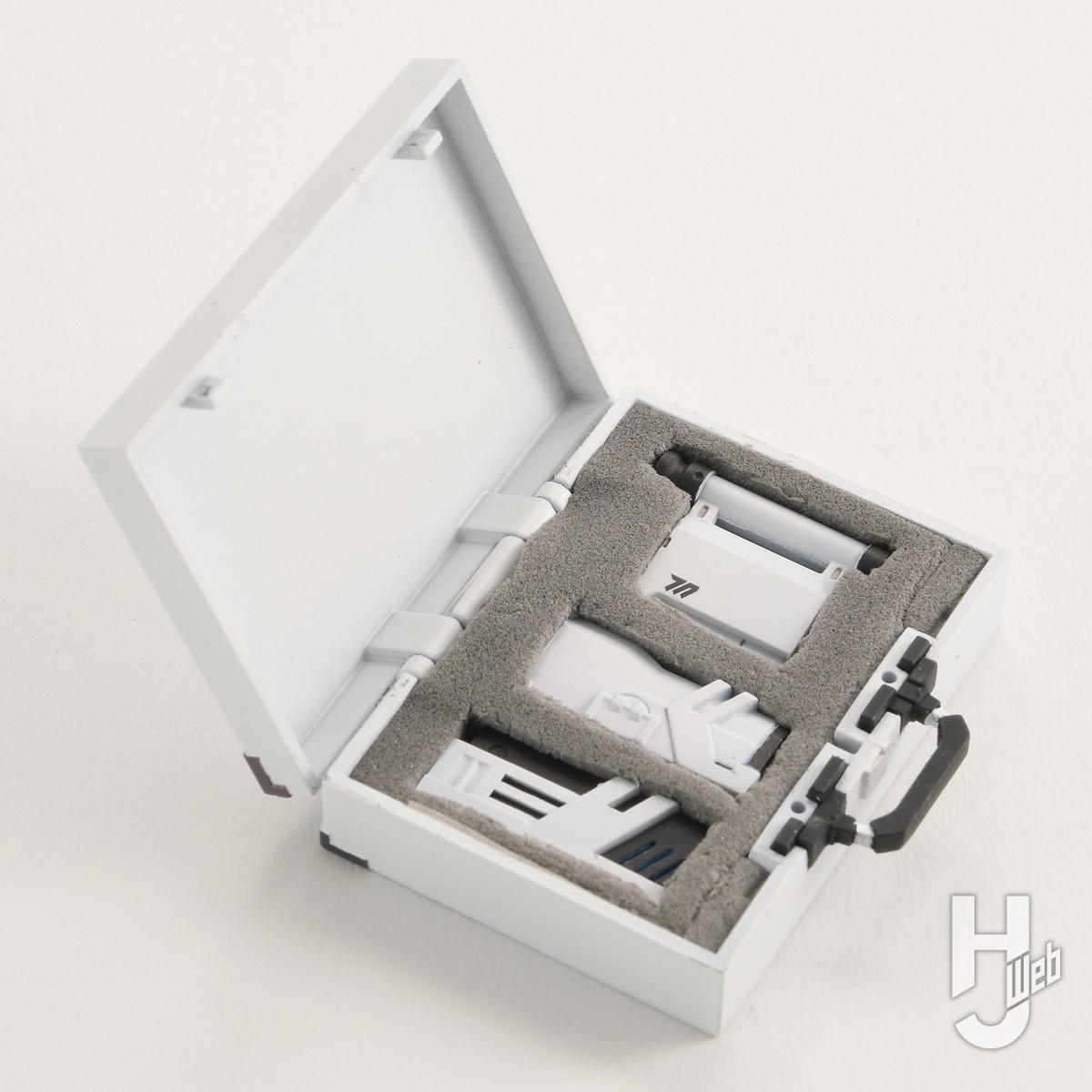 ▲ キット付属のアタッシュケースは中身こそないが開閉が可能。これを活かして中にスポンジを詰め、さらに武器のシークレットタイムを分解できるように加工し、実際に収納できるようにした