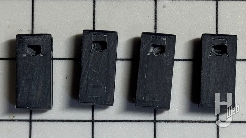 ▲ 身に着けているポーチは裏の肉抜きを埋めて整形。メイドブリムの黒い線は全体を先に黒く塗り、線をマスキングテープで描くことで再現した