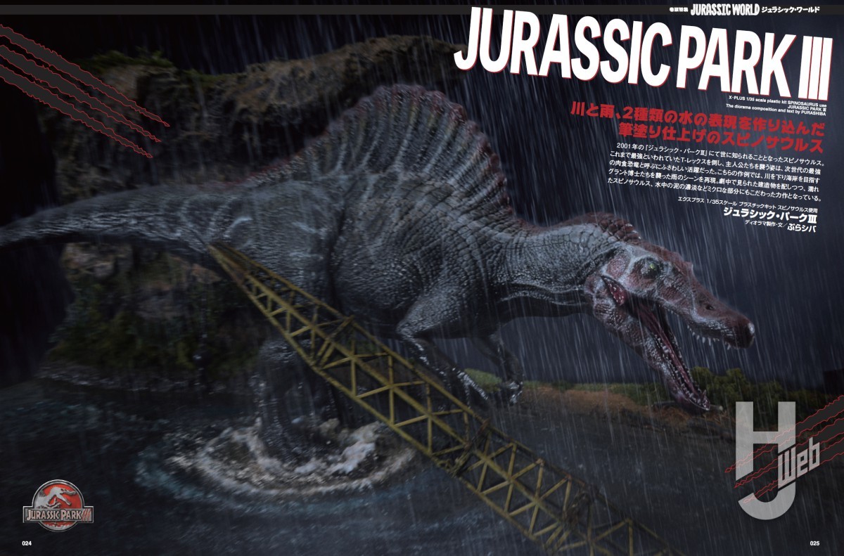 そこで、本作や歴代『ジュラシック』シリーズ視聴のおともに、「月刊ホビージャパン10月号」はいかがでしょうか。 本誌では巻頭特集にて『ジュラシック・ワールド』を大フィーチャー。これまでの映画作品紹介はもちろん、『ジュラシック』シリーズ歴代の名シーンを、エクスプラスから発売されている恐竜プラモを使用して大迫力のディオラマで再現!!