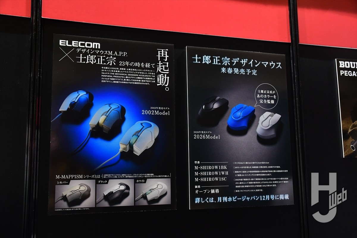 エレコム「士郎正宗デザインマウス」の2026年復刻モデルが会場展示、さらに士郎正宗監修のブルーカラーも公開!一般公開日にはHJブースにて“先行予約券”が限定配布!【ホビージャパン/第63回全日本模型ホビーショー】