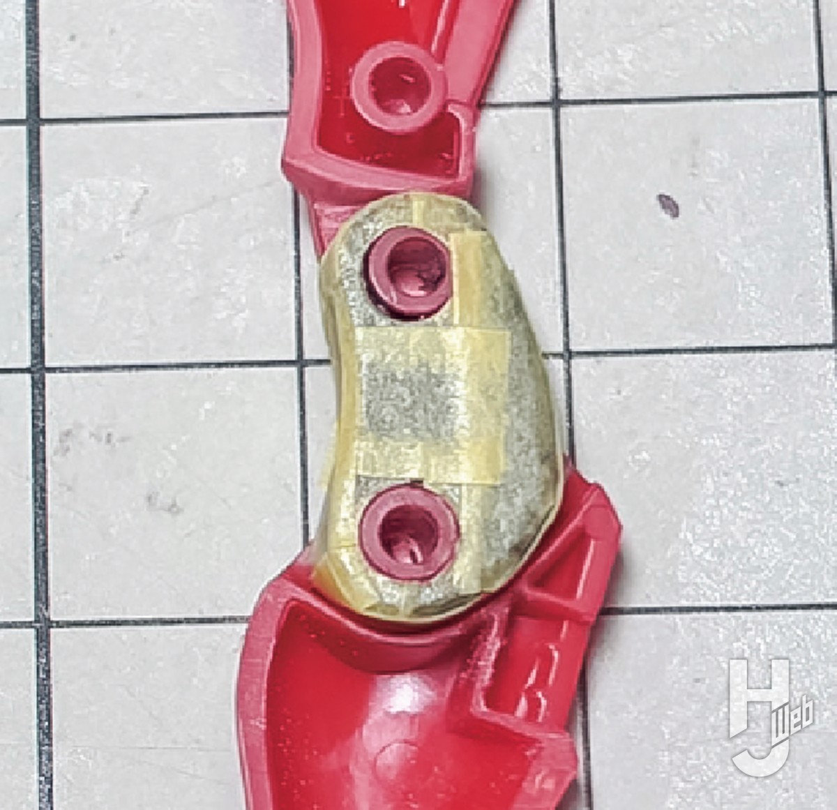 一部の関節パーツにPOMが使用されています。そのままだと塗料がのらない素材なのですが、Mr.メタルカラーがなぜか定着するとネットで見たので、Mr.メタルカラー→サーフェイサー→塗装の順で塗り重ねました。あまり強い塗膜ではありませんが、一応塗装できるようになります。