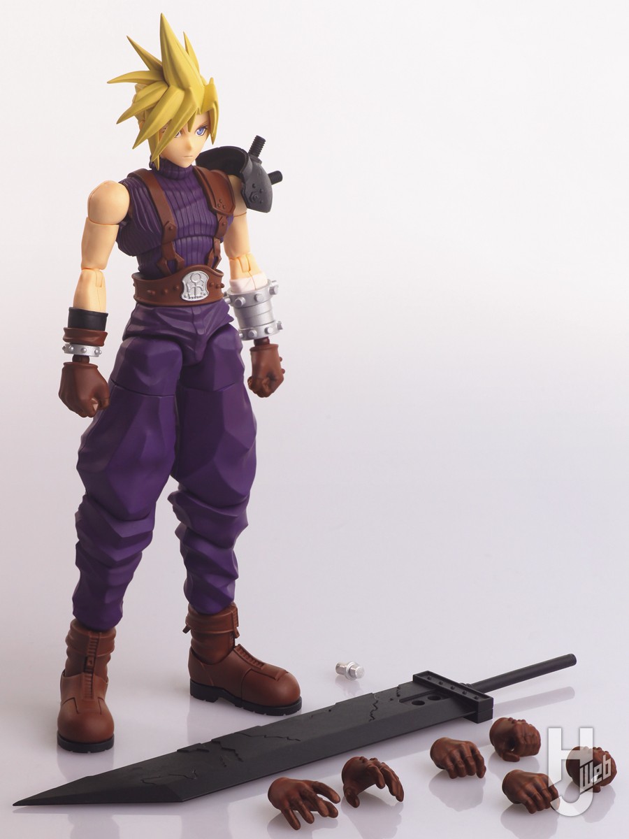 1997年発売のPS版ビジュアルを基にしており、髪型や衣装の形状はもちろん、成型色により組むだけでも再現度の高いクラウドが完成。劇中アクションを難なく取れる可動域もうれしいポイントだ。