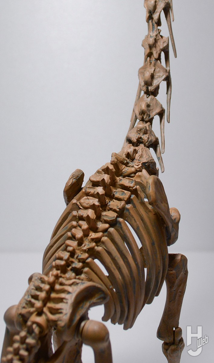▲ブラキオサウルス属として最初に命名されたのはアメリカ産のブラキオサウルス・アルティトラックスだが、はるかに完全な骨格が発見されたこともあり、ブラキオサウルス属の復元の主な参照とされたのはタンザニア産のブラキオサウルス・ブランカイ(今日のギラファティタン・ブランカイ)であった。キットの骨格ビルドはブラキオサウルス・アルティトラックスの雰囲気をよく表現しているが、それゆえギラファティタンの製作はかなりの大改造となった。各部のディテールアップはブラキオサウルスの骨格ビルドを作り込む際にも有効なので、ぜひ参考にしてほしい