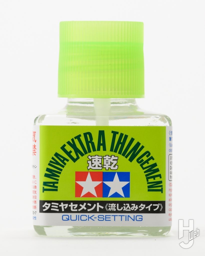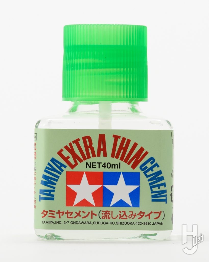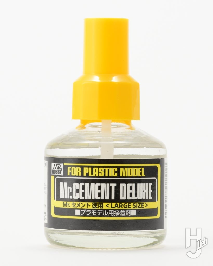 ▲ Mr.セメントの徳用サイズで40ml。GSIクレオスのこのサイズのプラセメント各種は昨年「角ビン→丸型ビン」へ変更されていますが、成分は同じまま引き継がれています