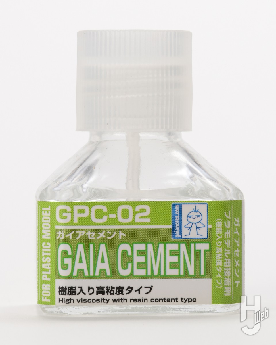 ▲ ガイアノーツの樹脂入りプラセメント。樹脂分が多めで高粘度となっているのが特徴。同社の流し込み用セメントを足して、好みの粘度に調整して使うことができます