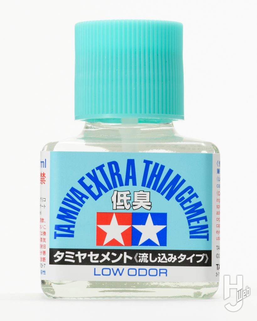 ▲この10月に発売されたばかりの接着剤。有機溶剤の臭いが気になりにくい“低臭”な流し込みタイプ。速乾ではなく、接着力や乾燥時間は「タミヤセメント(流し込みタイプ)」に近いです
