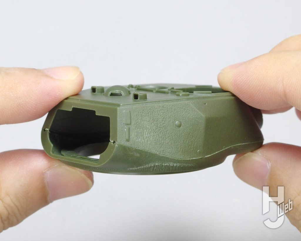 ▲ ハミ出したセメントがしっかり固まったらヤスリで整えて仕上げます。合わせ目分からない程に一体化したようになります。プラセメントが固まったところは堅さが周囲に近いので整形がしやすいです。貼り合わせでの合わせ目消しにも使える方法です