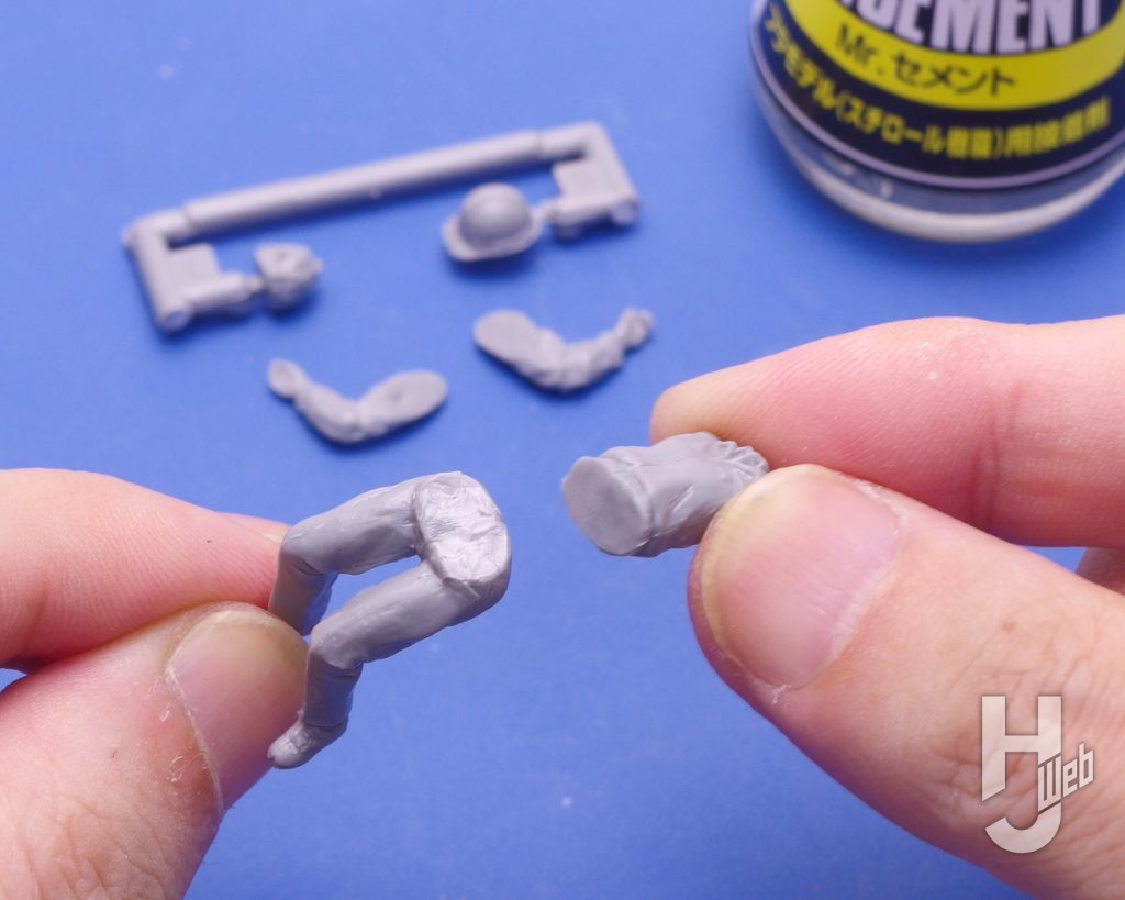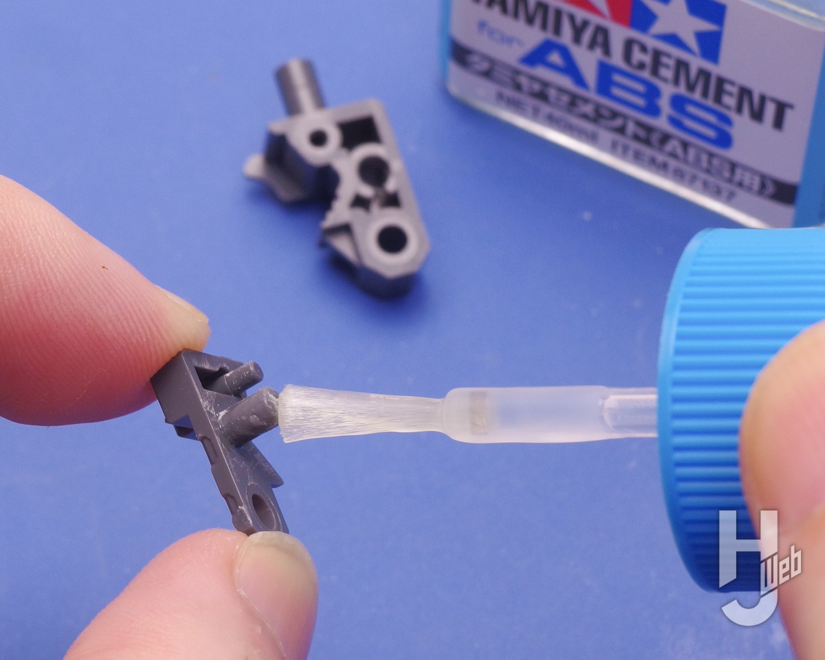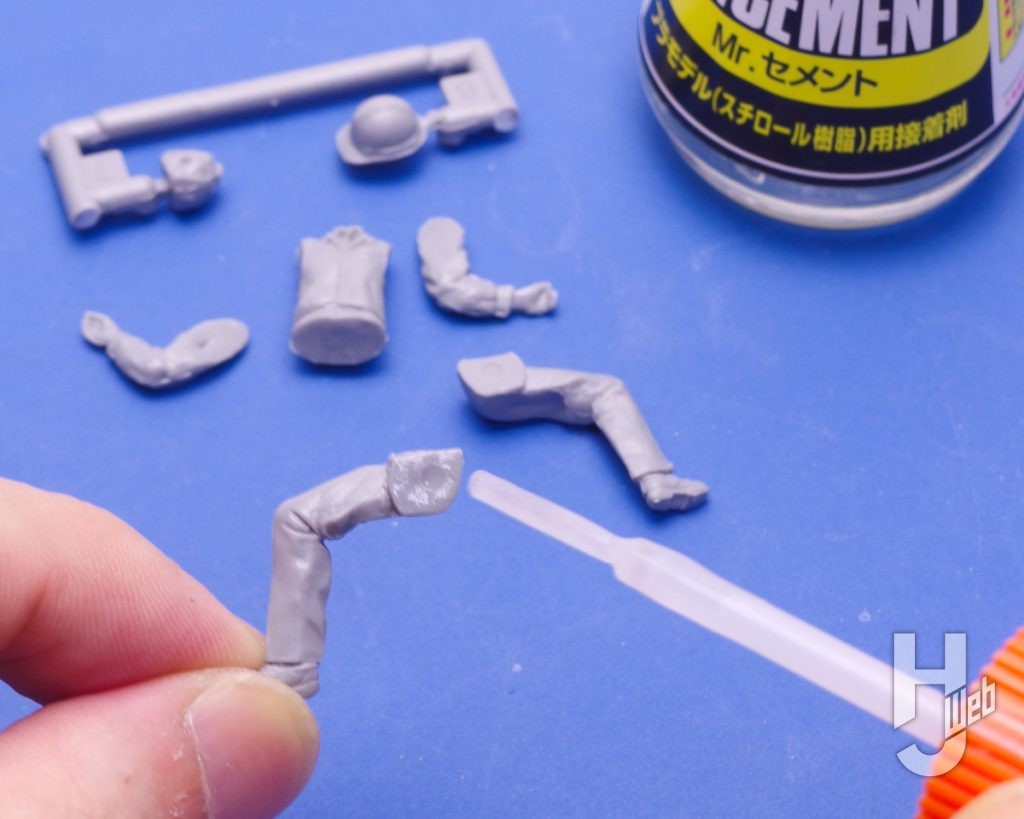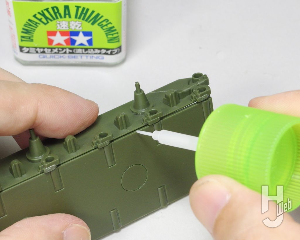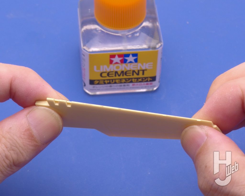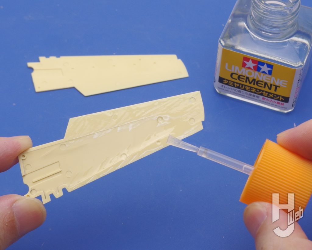 ▲ 樹脂入りセメントでの接着部に流し込みの“速乾”タイプを塗りたすことで、乾きを速めることができます。小パーツの固定やハミ出しの処理が進めやすくなります