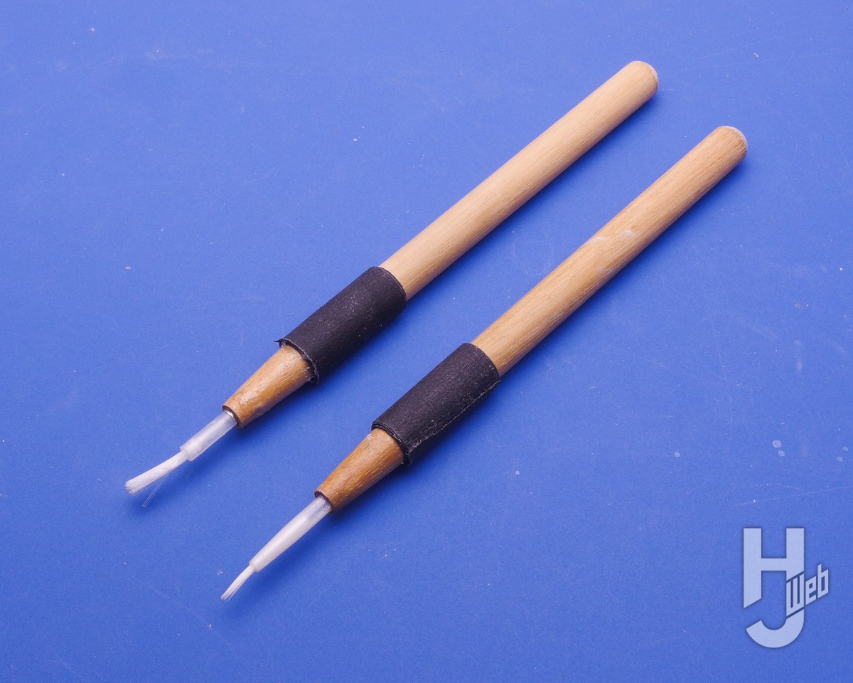 ▲ フタに付いたハケだけでなく、このように枝で延長したものを用意しておくと量が減ってもセメントを付けやすく、塗る箇所に合わせてハケを選びやすくなります