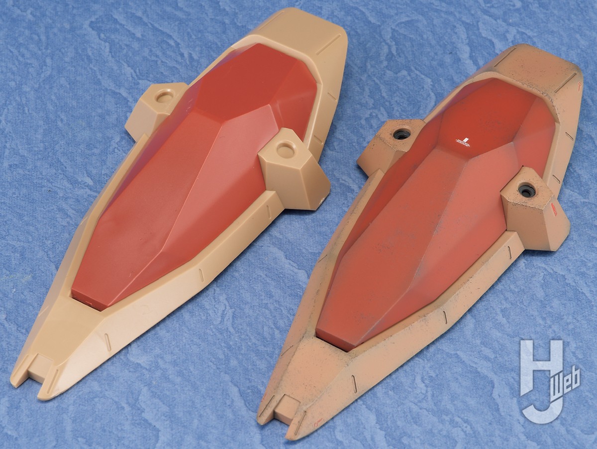 リアスカート裏側の肉抜きはエポパテで埋めているのですが、軽量タイプではなく通常タイプを使用しています。これは軽量タイプだと削れ過ぎて微妙な段差ができてしまうからで、少し重くなってしまいますが通常タイプを使用しています。