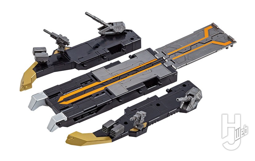 GXソードとは戦闘AIが搭載された巨大空中ドローン型ウェポンで、タクティカルムーバーやパワードスーツなどの人型戦闘マシンを乗せるフライトボード型ビークルとしても運用可能。さらにソードモードにすることでロボットベースGX<ロイヤルディフェンダー>の大剣にもなる。これらビルドアップアーマメントセットを活用することでロボットベースGX<ロイヤルディフェンダー>の戦力をより強固なものとなる。