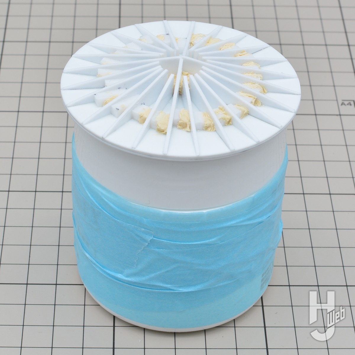 ▲ 1.0mm厚のプラ板で、直径7.5cm、高さ1cm、骨組み24個の治具を製作