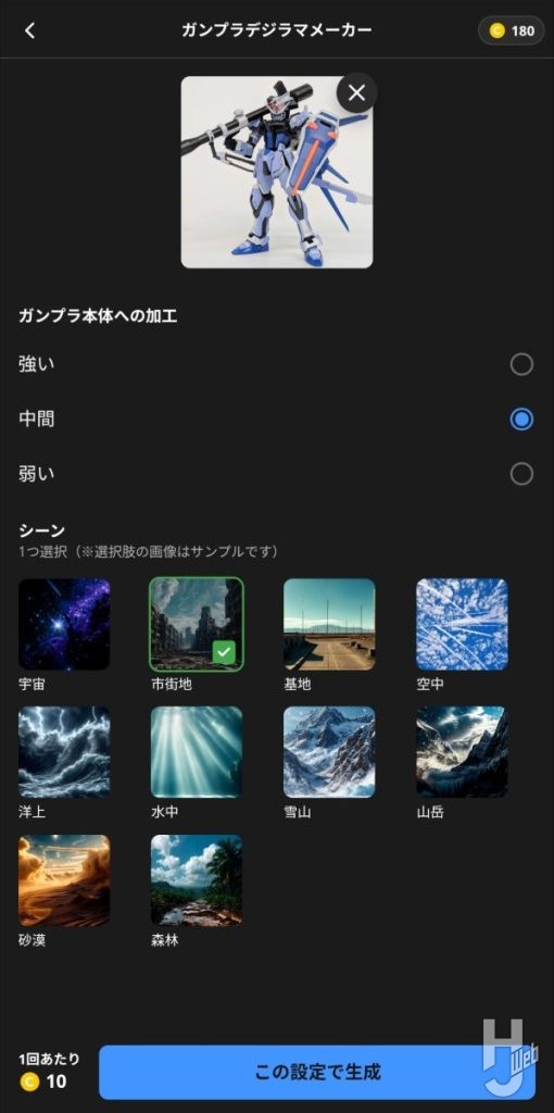 ガンプラのスマホ撮影術や「デジラマメーカー」での生成方法は、上記の記事で詳しく解説しているのでこちらもぜひ参考にしてみてください。