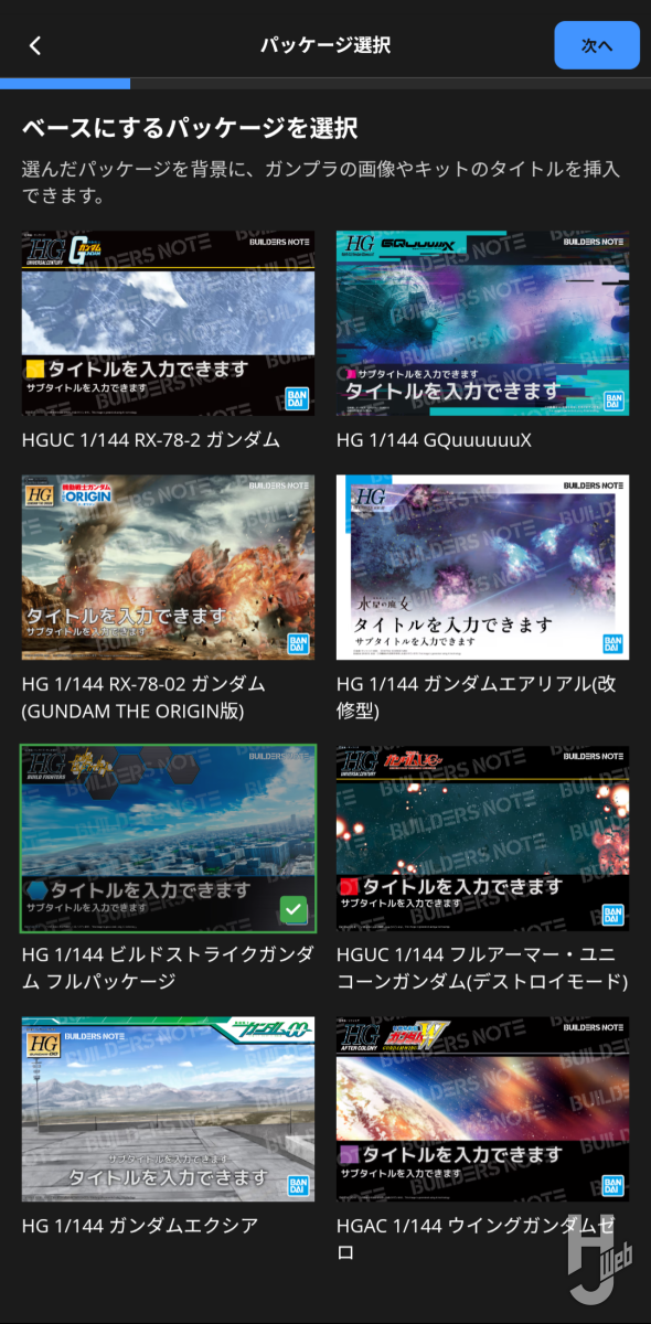 ▲「ガンプラパッケージデジラマ」では、今回の応募条件にもある「HG 1/144 ビルドストライクガンダム フルパッケージ」を選択してください