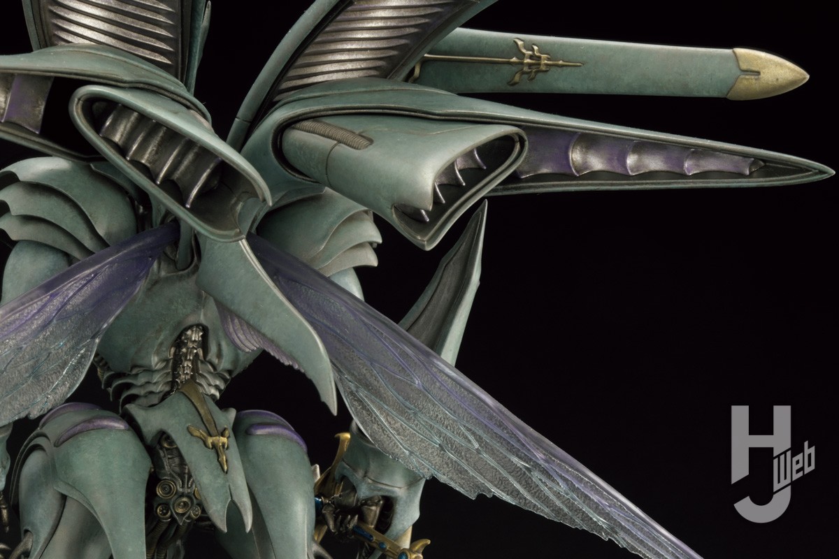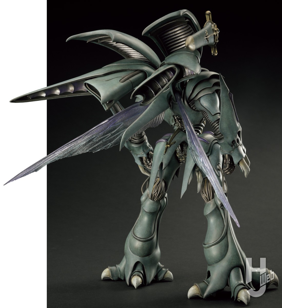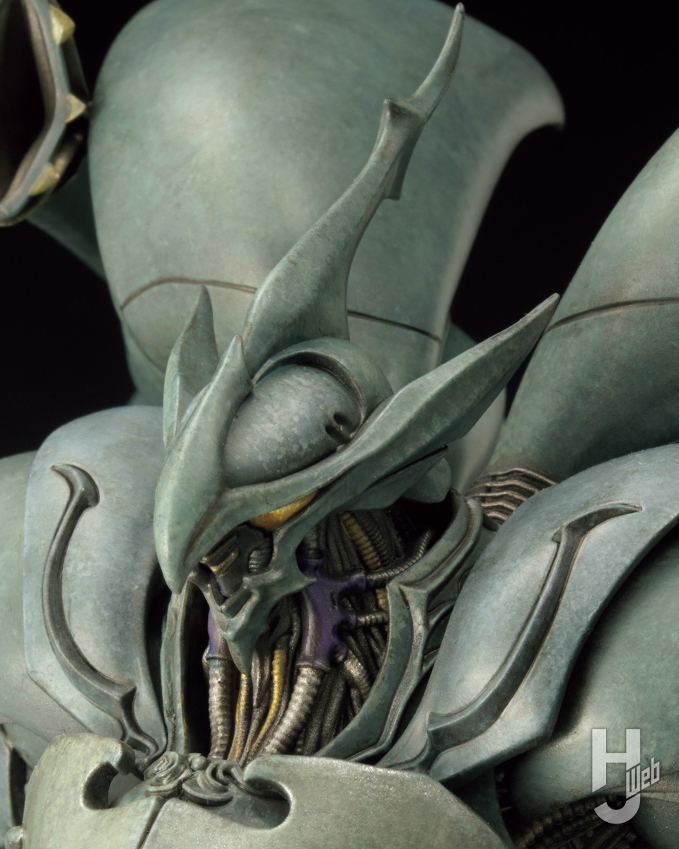 PLAMAXのオーラ・バトラーシリーズ第2弾ヴェルビン。第1弾のサーバインからさらに進化を遂げた成型技術やパーツ構成、指にささるほどのシャープな造形は、まさにプラキットの限界を超えた仕上がりといえる。ついに発売となる本キットを水性ホビーカラー筆塗りの達人・清水圭が製作。オーラ・バトラーの生い立ちを想起させる甲虫の鈍い光沢感とザラついたテクスチャーを施し、「オーラファンタズム」らしい生物感を演出している。
