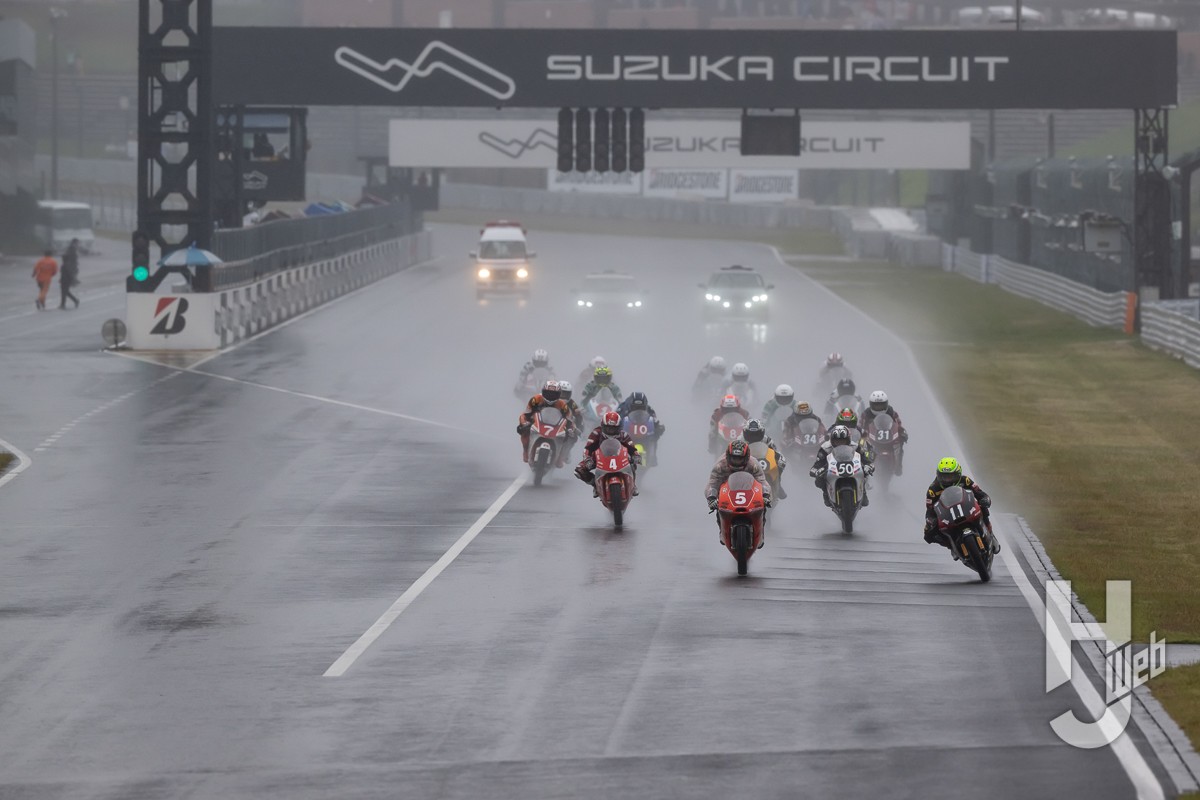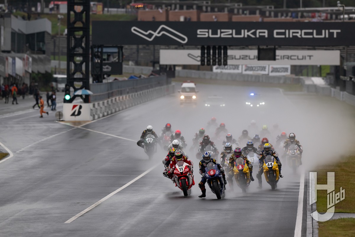 ポールポジションは#6松岡玲(ITO RACING BORG CUSTOM/ヤマハ)。2番手はチャンピオンに王手をかけた#3伊達悠太(AKENO SPEED・MAVERICK/ヤマハ)で、3番手に#2の長尾健吾(TEAMKENKEN Ytch/ヤマハ)。ランキング2番手の南本宗一郎(AKENO SPEED・YAMAHA)は2列目5番グリッドからのスタートだ。