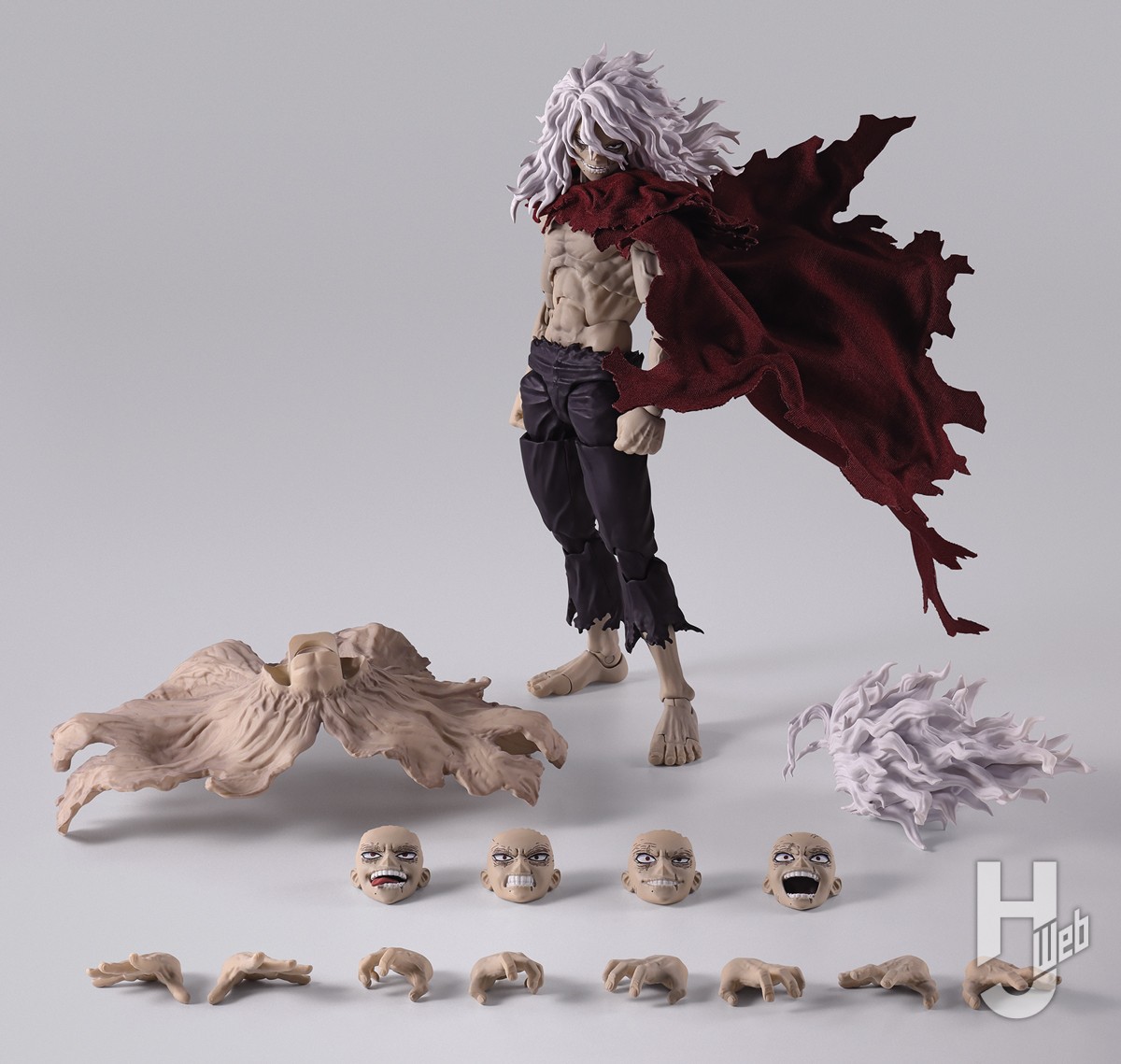TVアニメ『僕のヒーローアカデミア』より敵<ヴィラン>死柄木弔がS.H.Figuartsに現る! 劇中作画を元に検証しつくされたこだわりの造形と可動機構により、ハイレベルの劇中再現度を実現。ワイヤー入り布製マントをなびかせながら、死柄木弔の圧倒的存在感を放つ。