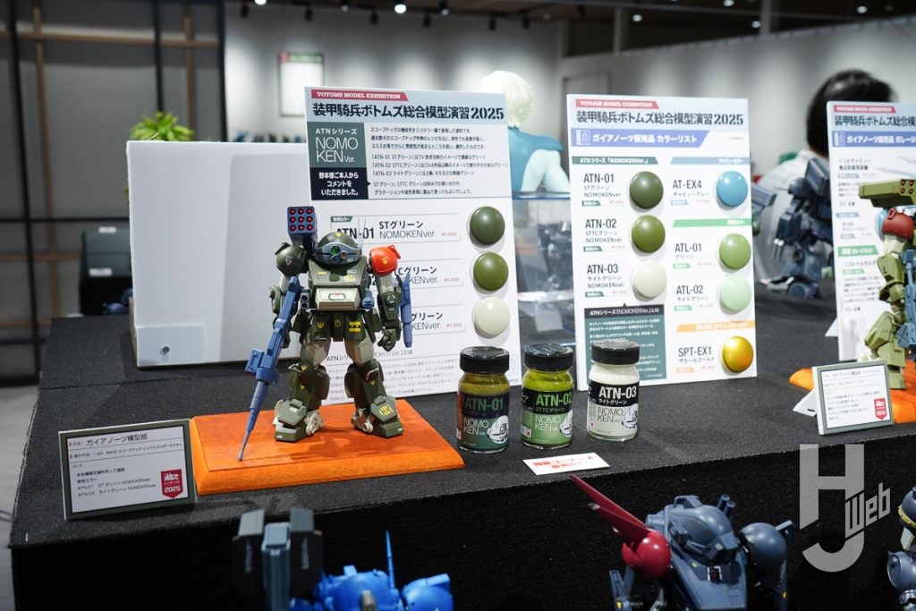 ▲ガイアノーツ模型部の作品も。イベント会場販売の「スコープドッグ用カラーNOMOKEN ver.」で塗装された作品も展示中