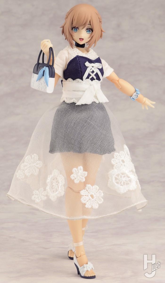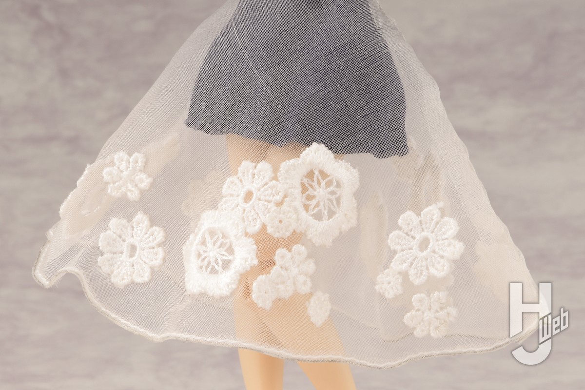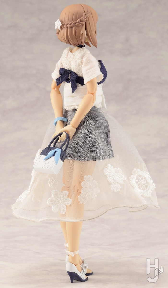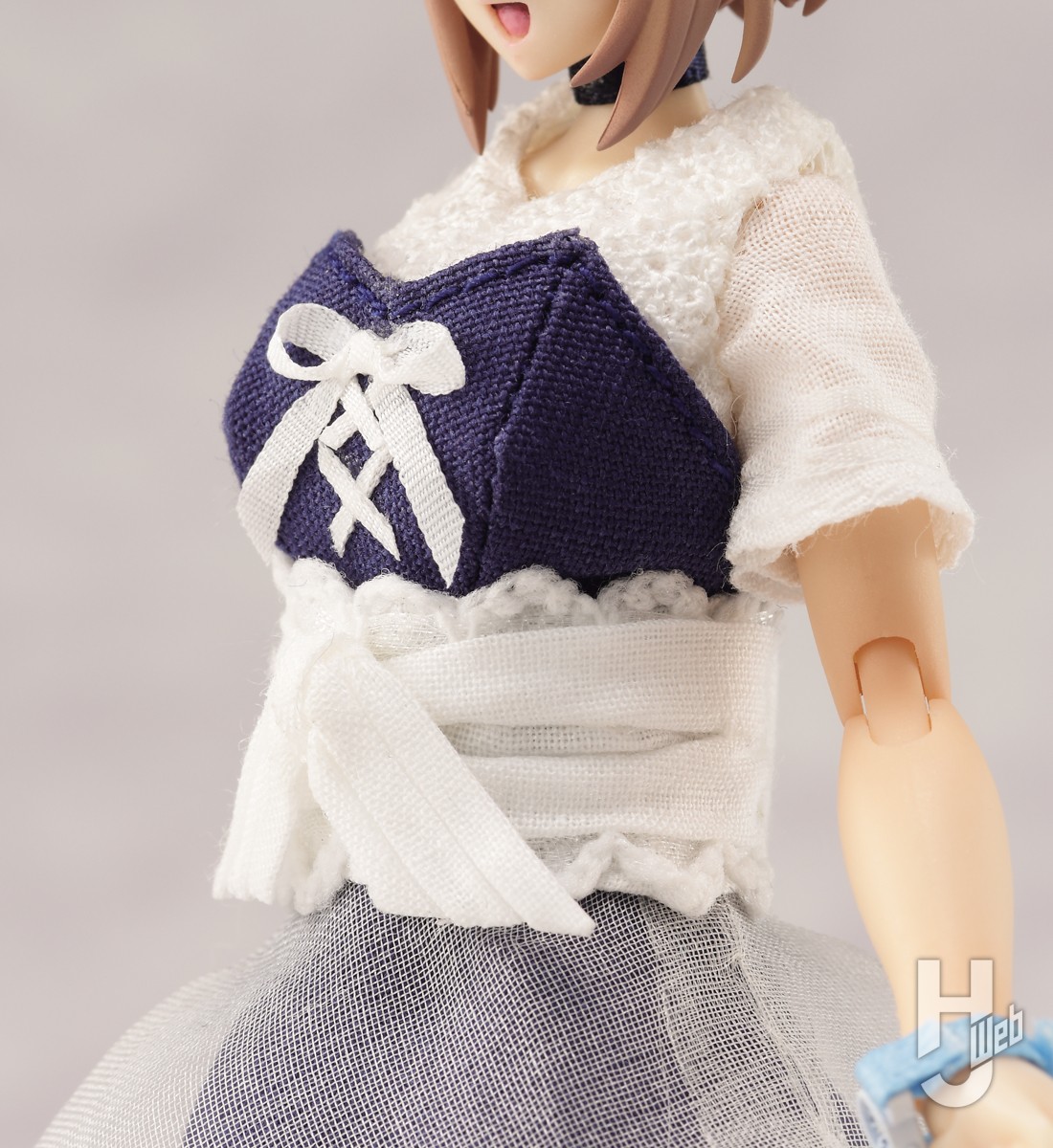 元衣装のデザインやカラーをすべて布服で再現し、キット同様にスカートの着脱仕様まで作り込んだ。これら衣装の作り込みもさることながら、キット本体の工作も丁寧な仕上げとアレンジも加えている。ガールズプラモの新しい遊びの提案として見どころの多い作例となった。