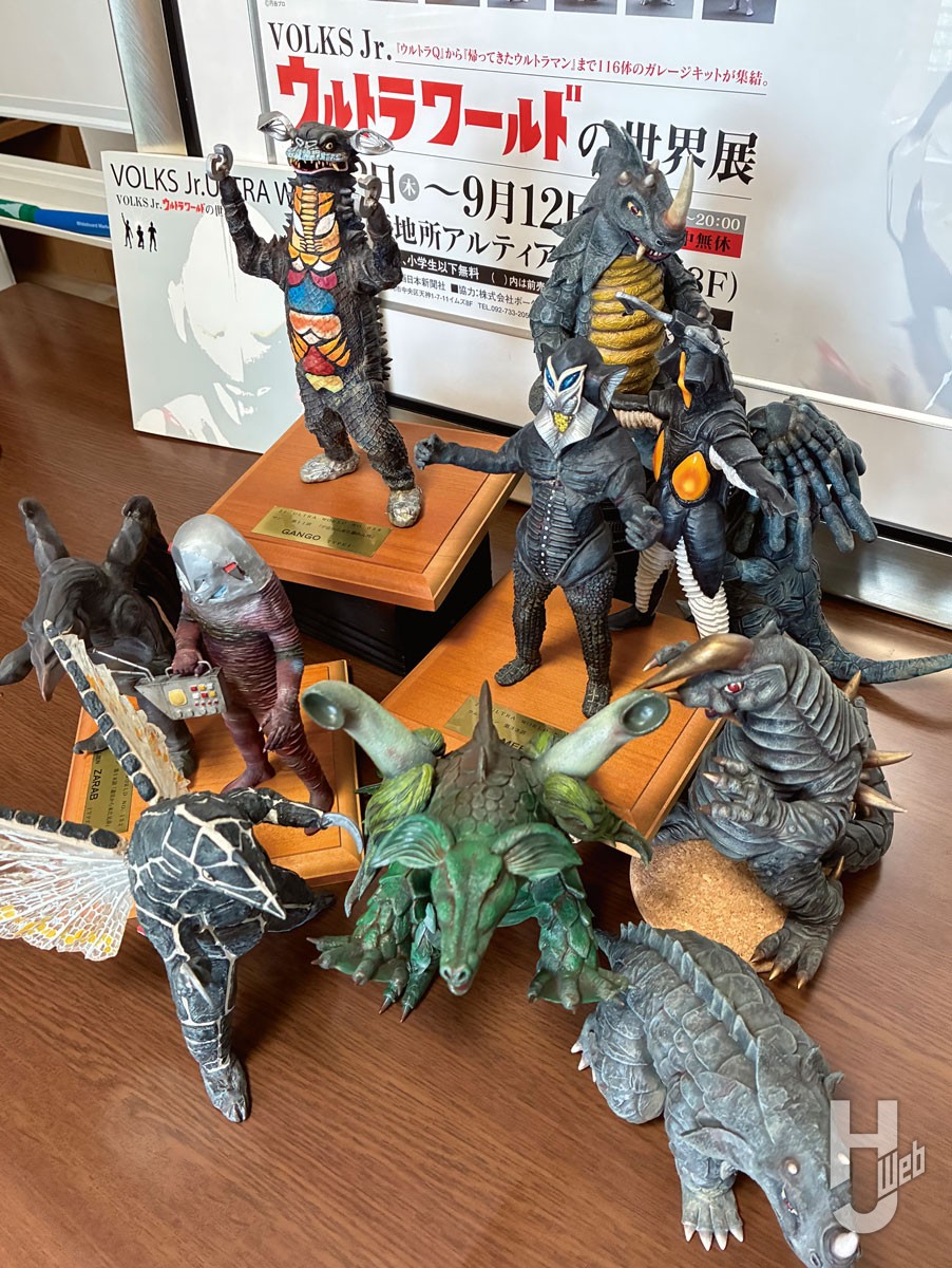 今回のお題は僕の十八番であるJr.ウルトラワールドにスポットを当てようと思います。今を去ること21年前、福岡市天神のど真ん中にあったイムズビル、その中の三菱アルティアムという会場にて、『VOLKS Jr.ウルトラワールドの世界展』という催しを行いました。1980年代からスタートしたボークスの怪獣ガレージキットシリーズ、貧乏大学生だった僕は食うもの着るものも我慢して、なけなしのお金を貯めながらコツコツと買い集めていきました。最初の頃はキットを洗って離型剤を落とすなんて知りません。パーティングラインの修正もおざなり、パテ埋めもなんとなく、サーフェイサーって何ぞやという具合ですから、仕上げたキットはガッタガタ、塗装なんてしばらくするとバリバリと剥がれ落ちるという体たらくでした。それでも数を重ねるうちになんとなくやり方が分かってきて、次第に『作る』から『魅せる』ことを意識するようになりました。 完成品が100体を越えた頃、西日本新聞さんから「展覧会をやりませんか」という声がかかり、1ヵ月の開催期間中、延べ1万人を越える方に足を運んでいただきました。関係者からは会場の新記録だとも聞かされました。ウルトラや怪獣、キットの持つポテンシャルを感じたものです。もしかすると読者の中には行かれた方もいらっしゃるかもしれませんね。