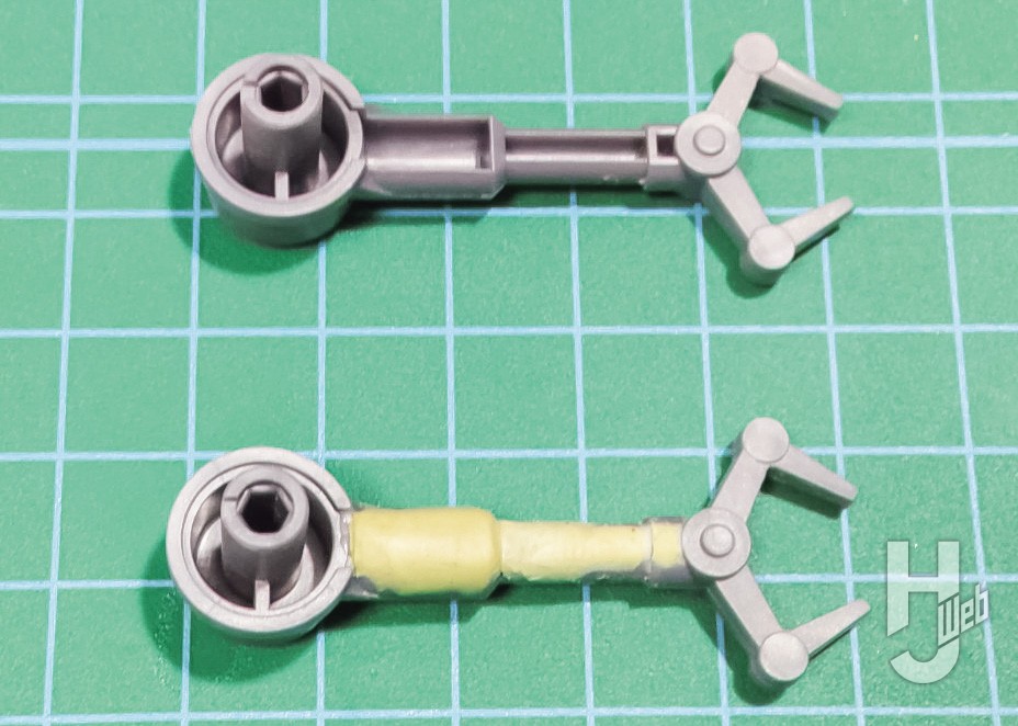 本体の白は、下地をメカサフ ヘヴィのグレーで塗装後、ガイアノーツのサーフェイサーエヴォ ホワイトを吹いて、ガイアカラー クールホワイトで整えました。