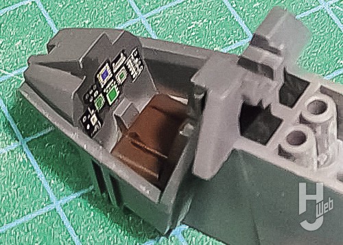 各メカのコックピットもほどよい雰囲気なので、座席部分の塗り分けだけでもいいのですが、スケールキットの戦闘機コンソール類デカールを貼ってディテールアップしようと思いました……思いましたが、やはりキャノピーでフタをしてしまうとうっすらとしか見えない(笑)。見えないけど、いいのです! 自己満足です!