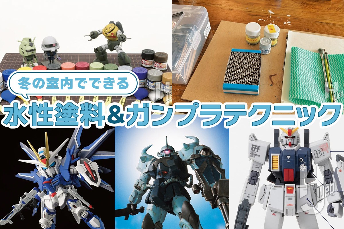 今回はホビージャパンウェブの中から、水性塗料やガンプラをさらに魅せるためのテクニックをご紹介している記事をピックアップ。冬の室内でも行えるお手軽スタイルとして参考にしてみてはいかがでしょうか。