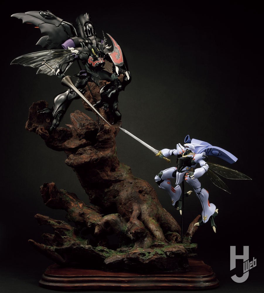 ここでは先日大好評の内に幕を下ろしたイベント「TAMASHII NATION 2025」より、会場にて話題となった大型ディオラマをご紹介。上記の『ダンバイン HighDensity』と、さらに新造形のズワァースが使用されており、今回ご紹介した『ダンバイン High Density』シリーズの試作的な意図も読み取れるだろう。巨木を背景に再現された白熱のバトルは、かつて隆盛を誇った美麗なガレージキットの佇まいと、目の前にバイストン・ウェルが垣間見えたかのような実在感を感じ取れるはずだ。