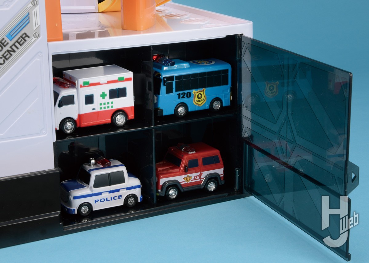 ▲本体の各部にはミニカーの収納スペースや駐車スペースが設けられている。こうした細かい配慮も嬉しいポイントだ