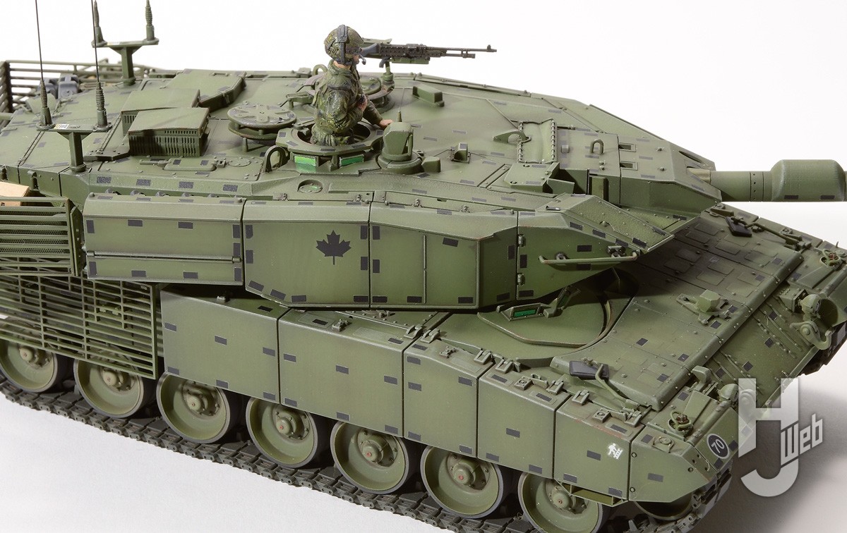 本誌が誇る現用戦車モデラー、井上賢一が今月お届けするのは、ホビーボスから発売中のレオパルト 2A4M CAN。カナダ陸軍がレオパルト 2A4に追加装備を施した強化型である。レオパルト2は多くの国でMBTとして採用されており、各国の独自の改良を施されたさまざまなバリエーションは模型のモチーフとしても魅力的な存在。今回の2A4Mも、砲塔を中心とした追加装甲によって、重厚感を増しながらも、現用戦車ならではのシャープなフォルムが製作意欲を掻き立てる一両となっている。
