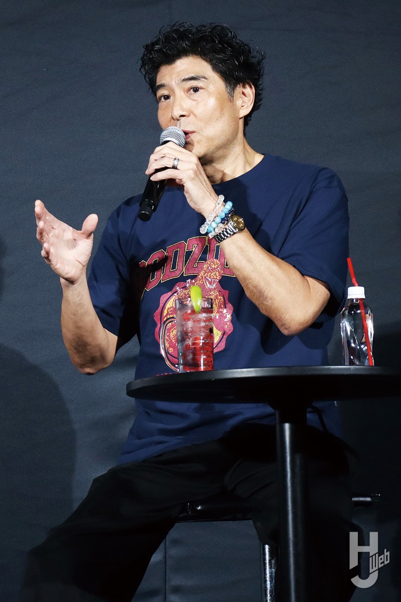 ▲ステージのラストとなる「居酒屋ゴジラ」のコーナーには『ゴジラVSメカゴジラ』(93年)の主役・髙嶋政宏氏が登壇。同作だけではなく、『ガンヘッド』(89年)や『ゴジラVSデストロイア』(95年)について、時には笑ってしまうエピソードもありつつ、各作品の当時の思い出や共演者の俳優さんたちについて、さらには今だから言えるような撮影裏話などを語ってファンを楽しませてくれた